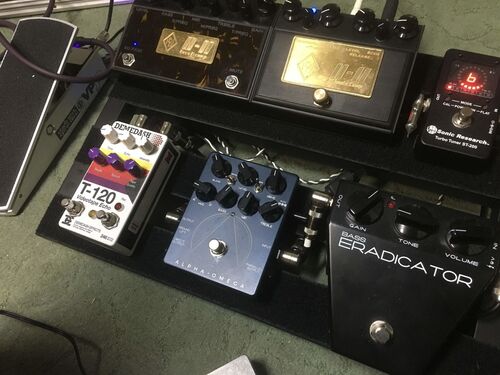 政府がマスクに2枚くれるよりも諭吉さん二枚くれたほうが嬉しいんじゃないと思ったメタキンです。 勿論一人二枚ね(笑) 先日久々にスタジオ小屋でエフェクター組み替えたりして遊びました。 結果こんな感じに落ち着きました。 tastydriveがあったところをbass…