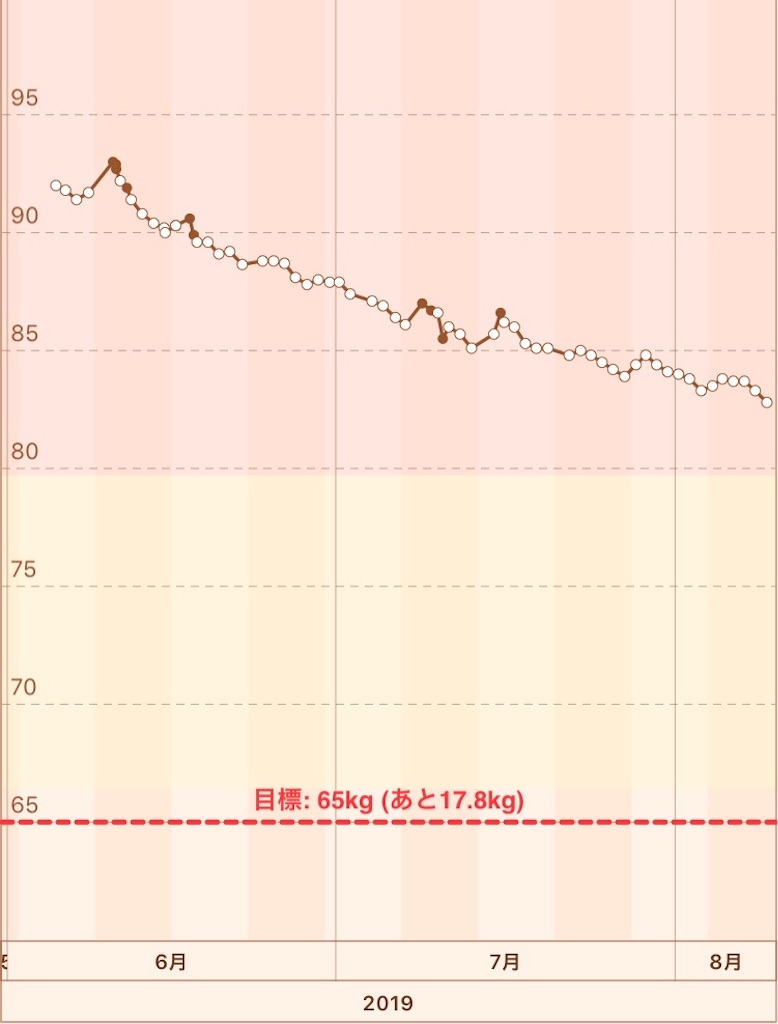 6月頭くらいからきちんと記録しつつの減量がスタートしたわけですが、やっとこさ-10kgくらいになりましたー!