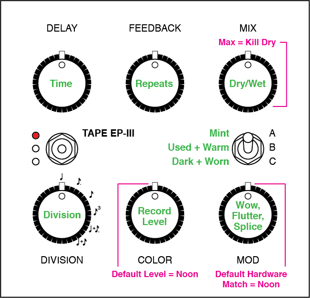 そしてそのモードを切り替えると各つまみの効果も変わります。
